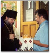 For 12 years the parish was served by visiting priests from Washington; services were held once or twice a month; during the summer months the church was often closed. Slowly the life of the parish was becoming extinguished, its light barely flickered…. Then in 1996 a miracle occurred: the Reverend Metropolitan Vitaly decided to revive the parish for services to be held in the ancient Slavonic language, since all surrounding churches serve exclusively in English, while there are many newly-arrived Russian and other Slavic emigres now living in the Baltimore area, seeking an old-calendar church serving in the traditional Slavonic language. The Metropolitan Vitaly specifically ordained a new priest to serve as rector of the Baltimore church - Father Rostislav Sheniloff, who was well-known to the parishioners: during the preceeding twelve years, while still a layman, he came to Baltimore for every service to sing and read in the choir. |